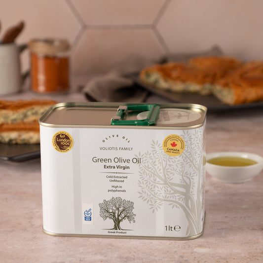 Voliotis Natives Olivenöl Extra Frühernte 1L Kanister in Geschenktüte