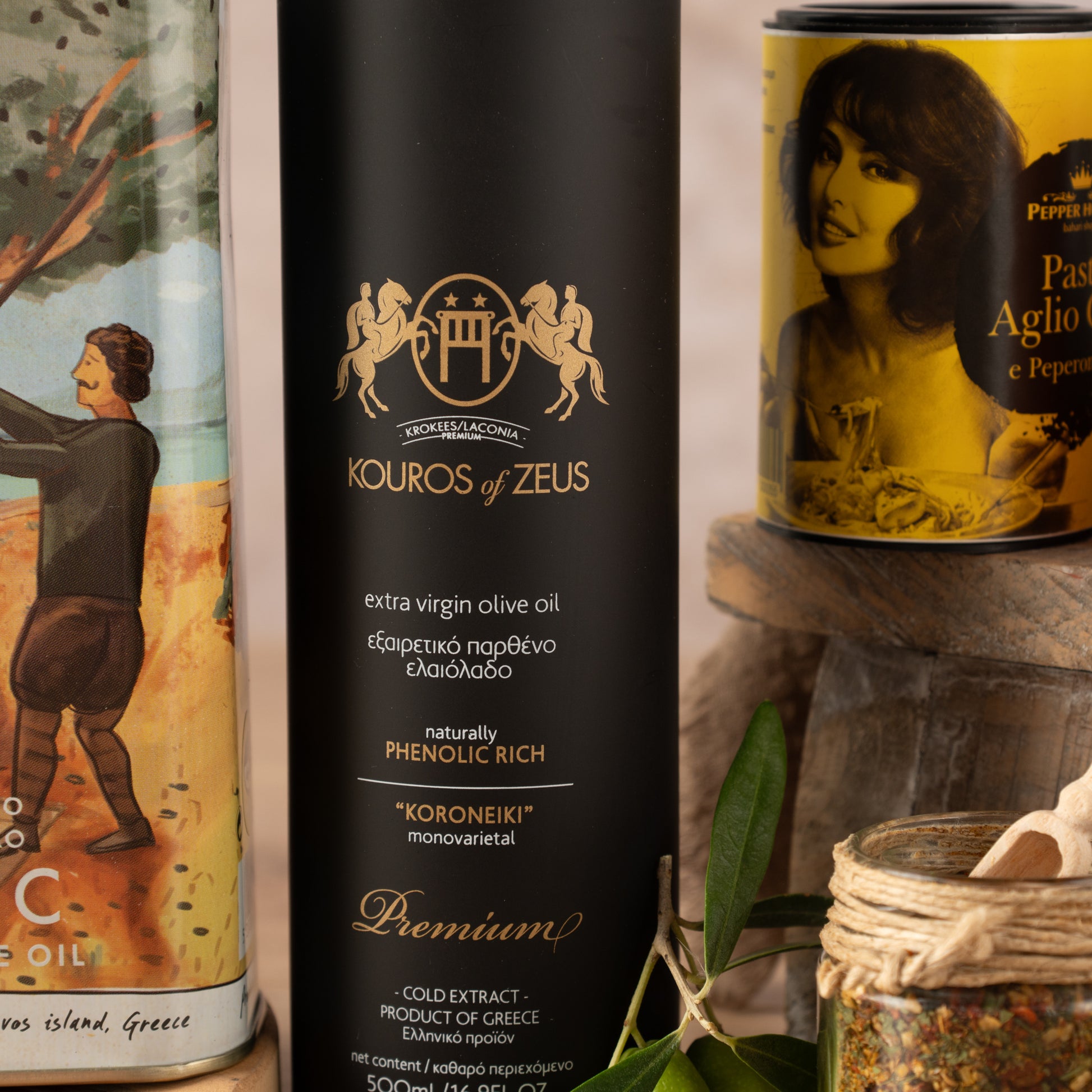 Kouros Extra (500ml) ist ein hochwertiges Olivenöl, das aus erlesenen Koroneiki-Oliven gewonnen wird, die in der Region Krokes der Peloponnes wachsen.