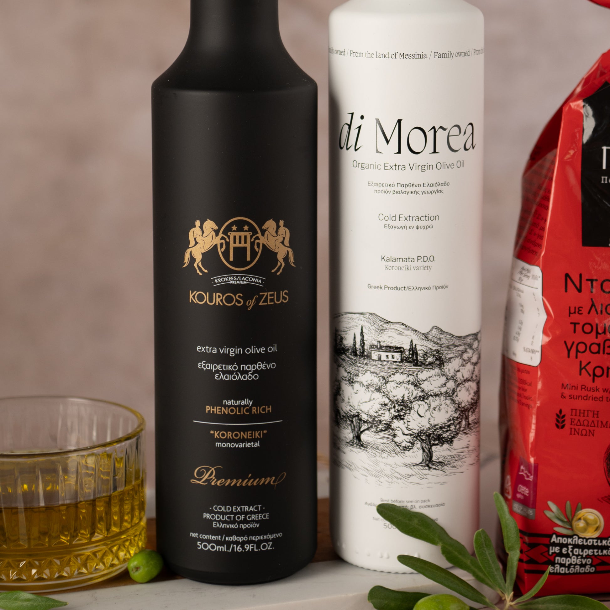 Hinzu kommt Di Morea Bio (500ml), ein traditionelles Olivenöl aus der Region Kiparissia, das Aromen von Nüssen und frischen Kräutern entfaltet und sich perfekt für Salate und Gemüsegerichte eignet.