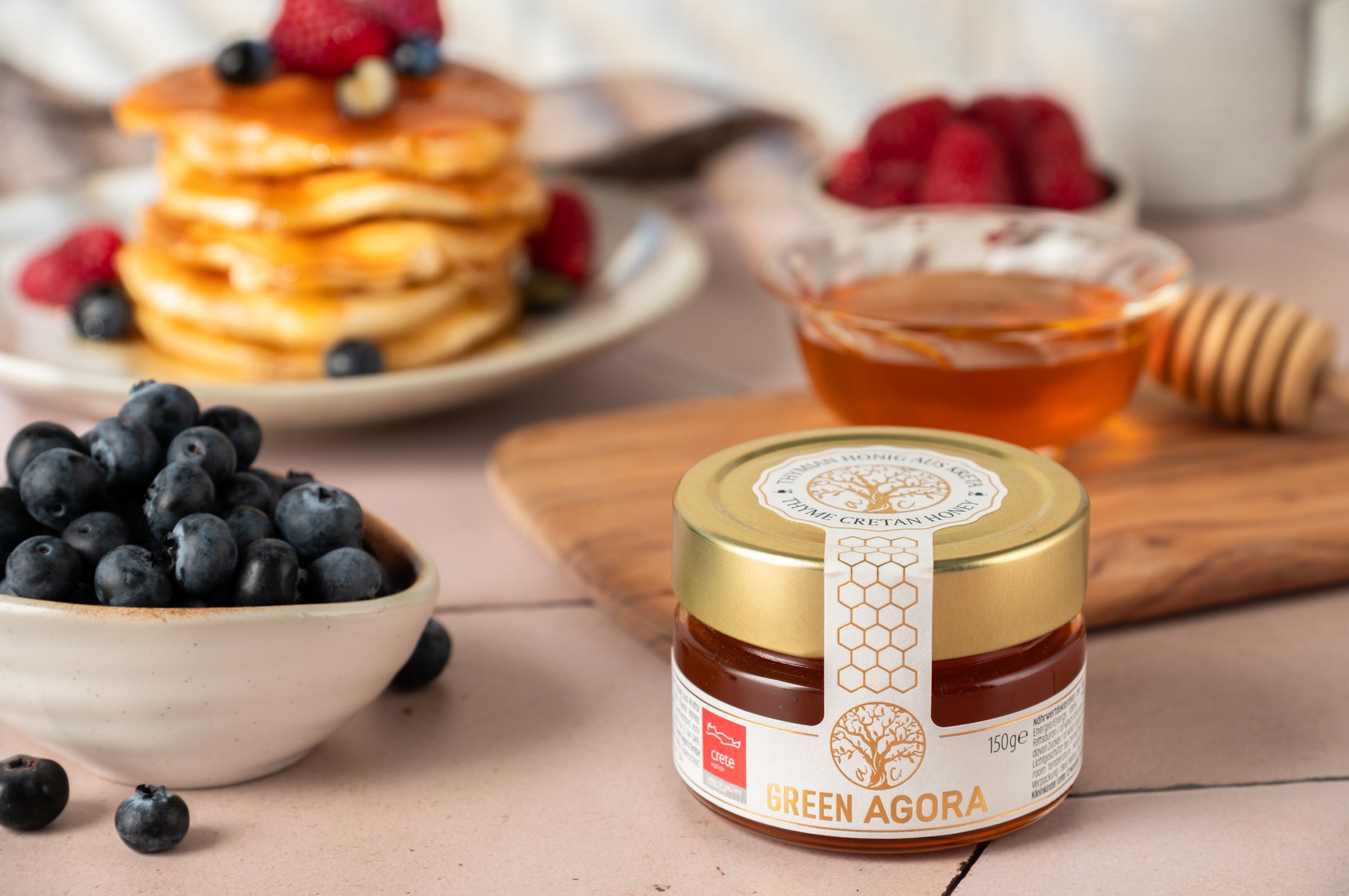 Dieser reine Thymianhonig aus Kreta besticht durch seine naturbelassene Qualität und eine intensiv goldene Farbe.